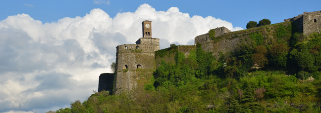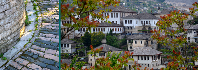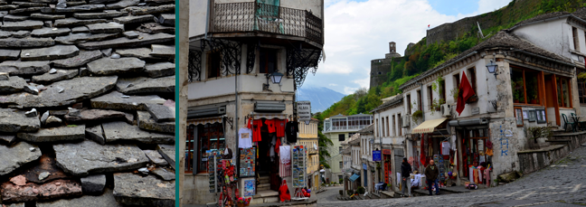 The old town is a protected UNESCO World Heritage site. Gjirokaster, built more than 200 years ago, is a rare example of Ottoman architecture. All streets are cobblestone, which is absolutely beautiful! But, they are difficult when dry and completely treacherous when wet. Walls of these stone fortress homes are a yard thick. Even the roof tiles are made from stone. It's no wonder that Gjirokaster is called "the stone city". |