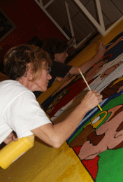 I wasn't sure I'd ever return. But, I thought I should write to the pastor and tell him about my experience at King Avenue. Up until this point, I'd never actually met John. However, I got an immediate reply and a lunch invitation. Things just kind of grew from that. John loved my murals, travels, clipart, folk tales, and portraits. He obviously spent a chunk of time on my website. Of course, he wanted a mural at King Avenue. No problem with that. And, even better, he wanted a mural in Piedras Negras at the Casa de Misericordia orphanage that the church helps to sponsor. | ||||