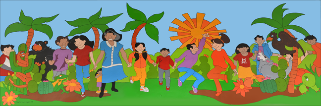 My experiences muraling are positive and, upon completion of a wall, I usually want to return some time in the future for another round. Well, you know all about good intentions and the best laid plans. It doesn't happen as much as I would like. But I have returned to some locations and I always knew I'd come back to Piedras Negras otra vez (again). I just didn't think it would take me two years to do it. On my first trip to paint in Mexico, I came with a church group. I was invited to paint a mural at an orphanage. There was a time limit, it was very rushed, and when I wasn't feasting on incredible Mexican food, I spent most of my time facing a wall. I needed more. More time, more experiences in Mexico, and certainly more food. It's a little unusual for me to go muraling with a group. I wasn't in charge of things like I usually am. (Who said anything about control issues?) It's not like things are in control all the time when I go to different countries anyway. But, at least I set the dates and plan the agenda. I must say, I enjoyed the group experience and was very willing to return to Mexico with another group from my church. Several groups came after my visit. I was just never invited back. I don't know why that never happened. I'm not one to invite myself into a group and then say, "Hey, let me take over the whole project and let's do a mural!" So I waited . . . and waited . . . and waited for almost two years! Then, I said to myself (and I do talk to myself too much), "Enough is enough! I have connections in Piedras Negras. I'm welcomed there. And, I've had an invitation back for quite a while. Why am I waiting on a bunch of gringos?" I didn't wait any longer. One of the painters from the last project in Mexico was Gaby. She was the group translator, one of my best painters ever, and a local teacher. Did I say teacher? Did I just mention someone with a connection at a school in a location where tourists rarely go? Did I contact Gaby and get everything set up almost instantly? The answer to all these questions is yes. I only had one requirement for this next round in Mexico. I wanted to come when there was a Mexican fiesta with people celebrating in the streets. In other words, I wanted to come during the Independence celebration in September. And, as it turned out, there was another group from my church coming at that same time. I was just there a whole lot longer. Upon arrival at the Instituto de Las Américas Montessori Bilingüe School, I met Rosie, the school director and one of my biggest fans. She knew all about my murals, travels, art and websites. She oozed with passion for her students and enthusiasm for the project. And, of course, that enthusiasm was infectious. As always, I sit down with people in the community to get their input for the mural. There are no preconceived ideas. It's their mural and I want them to get the drawing they want. The mural space was huge! I'm talking 13 yards by 3 1/2 yards on a shell shaped amphitheater in the center of the school grounds. There was a previous mural there, but it didn't stand the test a time. It's one of those true facts of life that I don't like to think about for my murals. Rosie wanted the new mural to reflect the message of the old one. The old mural included scenes from nature with elephants, rhinos, and other animals that had nothing to do with Mexico. Out with the old, in with the new! My mural had animals from Mexico including an iguana, black bear, coyote, tortoise, eagle and rattle snake. The old mural had a group of children holding hands in a circle. The thought behind that was the school's philosophy of supporting each other, helping everyone, and making all people feel a welcomed part of the community. In my mind, if you saw the completed circle, you were outside observing. So, in the new mural, a group of people, hand in hand, filled the length of the semi-circle. But, it wasn't complete. The other half of the circle included the audience. They were needed to fulfill the school's mission. And, I'm very pleased to say, that was my experience in Piedras Negras. To fully understand that experience, you'll have to continue on to my adventure section. |
