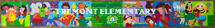 Click here to see larger version. Mural 55, Tremont Elementary, Upper Arlington, Ohio Over a year ago I contacted schools in Central Ohio to introduce my murals and hopefully generate local interest. It didn't. And then, I was discovered by U.S. embassies and I never looked back. That was then. This is now. In the past year, I contacted approximately 180 embassies. Several expressed genuine interest. A few talked about specific months. None committed to actual dates. As months ticked by, I decided it was time to give schools another try. If I could contact nearly two hundred embassies, I could certainly do as well in Central Ohio. I contacted more than two hundred fifty elementary, middle and high schools throughout Columbus and the surrounding counties. E-mailings included messages, photos and videos to principals, assistant principals, art teachers, librarians and special needs teachers. I decided it was best to cover all of my bases. In other words, I threw an extremely wide net. I didn't get as many bites, or even nibbles, as you might expect or I might have hoped for. One principal said that the e-mail address located on the district website was not the one normally used. Whatever the reason, not many people replied. But, thank goodness, it caught the eye of the principal of Tremont Elementary School in Upper Arlington. He had a committee that wanted a face-to-face. It was obvious as soon as I entered Tremont Elementary, that this was the kind of school anyone would want their child to attend. It was clean. It was cheerful. It was bright. And, the art teacher must have been amazing because terrific student art was visible everywhere. As it turned out, there were three art teachers. And, as I sat down to brainstorm with them and their principal, I kind of wondered, "Why am I here at this building that has three art teachers, one of whom is a Columbus muralist?" The answer to that was, I do something amazing and what they wanted was something bigger than any regular classroom teacher normally had time to do. The people at Tremont Elementary school wanted one of my largest murals ever, eighteen yards by two yards, and they wanted every student in the school to participate in the project. Every student included about six hundred fifty children. No other school had ever asked that of me before. The brainstorming session went well. I suggested a mural similar to one I created in another corner of Columbus at the NNEMAP food pantry. My idea was huge letters in the background spelling TREMONT with designs inside each letter. The committee I met with wanted student input in the design. I had the perfect suggestion. Yes, sometimes that happens. Each letter of the mural could represent a specific grade level in the school. Students could brainstorm the collection of events that they most remembered from that year. The mural was planned for an exterior wall by the playground. I had plenty of time to plan for it. Since it was outside, I had to wait six months for winter weather to pass. That sounds like an incredibly long wait, but it was an unusually awful winter in Ohio with cold, rain, snow, more snow, bitter cold, a hint of spring and then tornadoes, flooding, more rain and repeatedly more snow over and over. I expected all along for the mural to start on April 1st. I guess I was the fool this time. The freezing, horrid, extremely miserable weather lasted a few weeks longer than that, with an extra freezing mess thrown in for good measure the day we were supposed to start painting. It gave the teachers plenty of time to prepare the students for my arrival. I have never been to a school more prepared. Other places have put up signs in the past and told their students and parents I was going to paint, but these kids were really, really prepared. One of the art teachers created a PowerPoint presentation about me and shared it eighteen times. I wouldn't mind seeing that myself. Anyway, obviously, every kid with ears to hear, heard about the most non-famous world-famous artist on the planet who was coming to their school. They knew my name. The mural was so large that it took three days of preparation. (Usually, it only takes about three hours.) One day was used in painting a primer on the brick wall and then it took two days to sketch the design. That meant, there were a lot of recesses when the muralist was on display, drawing, for all the world to watch, at least the world of Tremont. And, much to my amazement, there were always kids who wanted to sit down along side of the mural and watch it take shape. What kind of kids give up their recess time to do that? I guess the answer is the kind that have an art teacher who gives eighteen PowerPoint presentations. The kids were uniquely interested in the design. After all, it depicted their suggestions and they were so very familiar with the contents included in each grade level. I might not have understood each event, but the kids surely did. T Kindergarten: One of the highlights of the year was hatching eggs. The littlest Lions at Tremont had their own playground with a unique kind of swing. They also made rockets and had reading buddies with older students. And, they had a pet teddy bear that mysteriously disappeared on campus. They needed scavenger hunts to locate their friend. R Grade One: I knew I liked Tremont Elementary when I heard about the Buddy Bench. If you happen to sit on it during recess, it means it's a day when you need some special T.L.C. and those who sit on this bench find it given by other caring kids on campus. Birds were studied and bird houses constructed in grade one. They enjoyed a roller skating party and participated in the Turkey Train, where food supplies were gathered school-wide for those in need. I assume that 100 Days of School is a big event in most first grade classes. And this year, Upper Arlington celebrated its 100th anniversary. So, I included a huge 100 in the background of this letter. To make it even more 